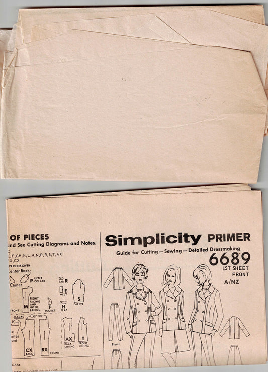 Simplicity 6689 Womens Jacket Skirt & Pants 1960s Vintage Sewing Pattern Size 14 Bust 34 inches