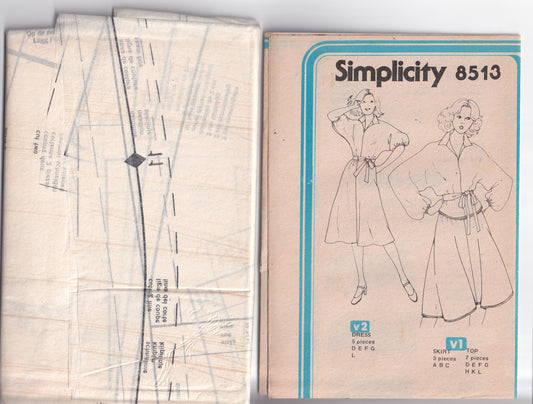 Simplicity 8513 Womens EASY Pullover Puff Sleeved Dress Top & Skirt 1970s Vintage Sewing Pattern Size MEDIUM UNCUT Factory Folded