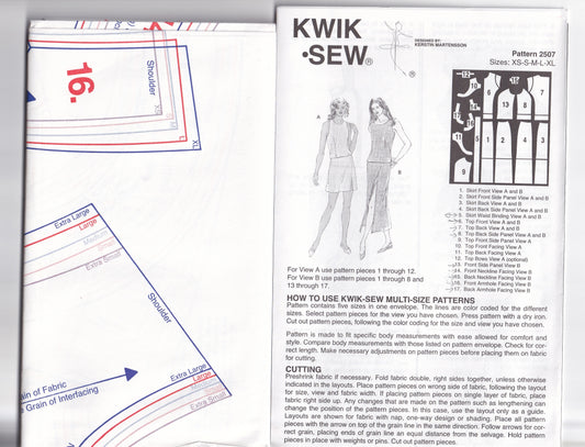Kwik Sew 2507 Womens Princess Tops & Skirts Out Of Print Sewing Pattern Size XS - XL UNCUT Factory Folded