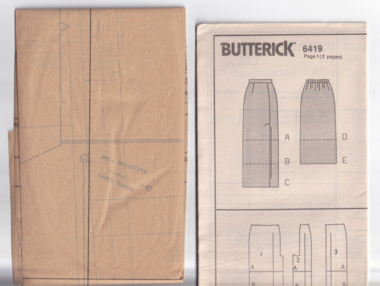 Butterick 6419 Womens Slim Asymmetric Skirts 1990s Vintage Sewing Pattern Size 12 - 16 UNCUT Factory Folded