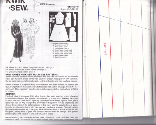 Kwik Sew 2401 Womens Peplum Effect Shirt Jacket & Flared Bias Skirt 1990s Vintage Sewing Pattern Size XS - XL UNCUT Factory Folded