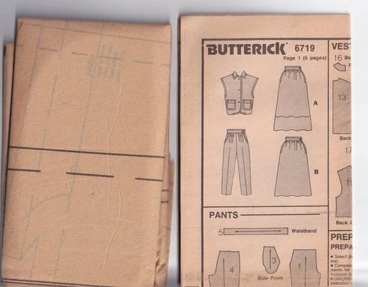 Butterick 6719 EVAN-PICONE Womens Retro Loose Fitting Vest Skirt & Pants 1980s Vintage Sewing Pattern Size 10 Bust 32.5 Inches UNCUT Factory Folded