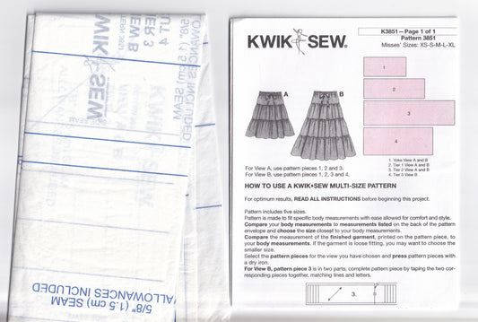 Kwik Sew 3851 Womens Classic Tiered Skirts Out Of Print Sewing Pattern Size XS - XL UNCUT Factory Folded