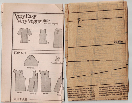 Vogue 9607 Womens Back Buttoned Top & Skirt with Pockets 1980s Vintage Sewing Pattern Size 8 - 12 UNCUT Factory Folded
