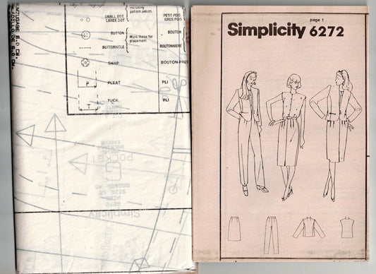 Simplicity 6272 Womens Funnel Neck Jacket Top Skirt & Pants 1980s Vintage Sewing Pattern Size 12 Bust 34 inches UNCUT Factory Folded