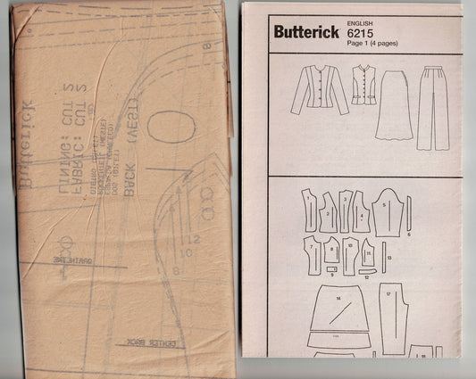 Butterick 6215 Womens Suit with Jacket Vest Skirt & Pants 1990s Vintage Sewing Pattern Size 8 - 12 UNCUT Factory Folded