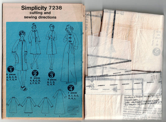Simplicity 7238 Womens Zip Front Robe 1970s Vintage Sewing Pattern Size 10 Bust 32.5 Inches