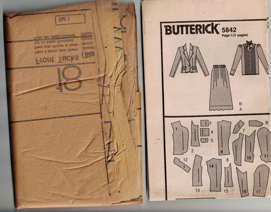 Butterick 5842 J G HOOK Womens Steampunk Blouse Shaped Jacket & Skirt 1980s Vintage Sewing Pattern Size 12 - 16 UNCUT Factory Folded