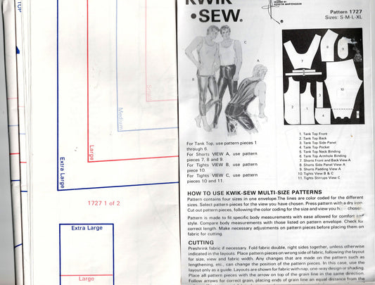 Kwik Sew 1727 Mens Stretch Lycra Tank Tops Bike Shorts Stirrup Pants Activewear 1980s Vintage Sewing Pattern Size S-XL UNCUT Factory Folded