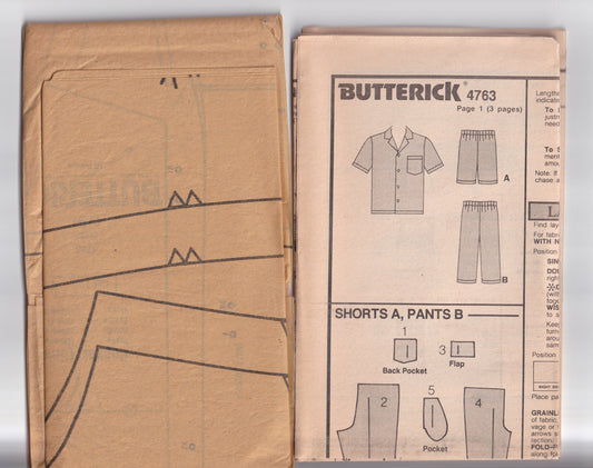Butterick 4763 Mens Classic Shirts & Shorts 1980s Vintage Paper Sewing Pattern Size L - XL UNCUT Factory Folded