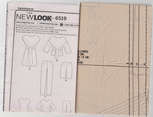 New Look 6519 Womens EASY Tie Front Dress or Top Shorts & Pants Out Of Print Paper Sewing Pattern Size 8 - 20 UNCUT Factory Folded