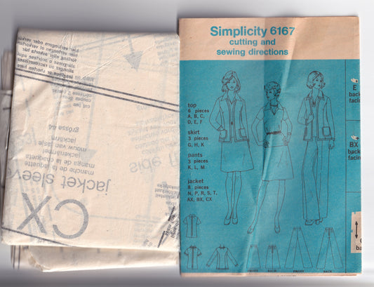 Simplicity 6167 Womens Wide Collar Top Cardigan Jacket Skirt & Wide Leg Pants 1970s Vintage Paper Sewing Pattern Size 18 Bust 40 Inches