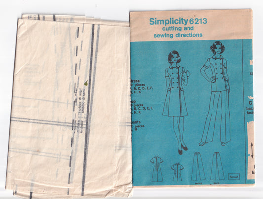 Simplicity 6213 Womens Princess Seamed Coatdress Tunic & Pants 1970s Vintage Paper Sewing Pattern Size 16 Bust 38 inches