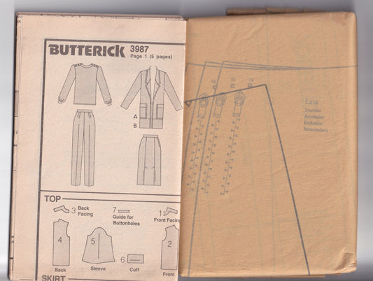 Butterick 3987 TODAY'S WARDROBE Womens Loose Fitting Jacket Skirt Pants & Top 1980s Vintage Paper Sewing Pattern Size 14 - 18 UNCUT Factory Folded