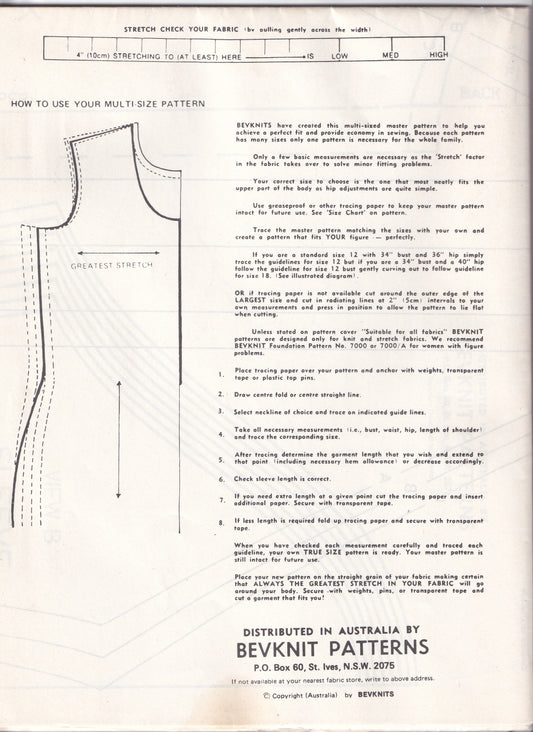 Bevknits 2600 Womens Stretch Knit Sweaters & Cardigan 1970s Vintage Paper Master Sewing Pattern Size 8 - 22 UNCUT Factory Folded