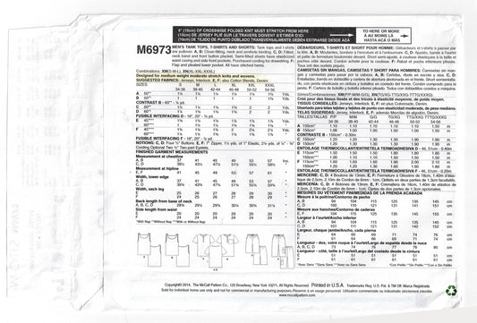 McCall's 6973 Mens Tank Tops Shirt & Cargo Shorts Sewing Pattern Size XL - 3XL UNCUT Factory Folded