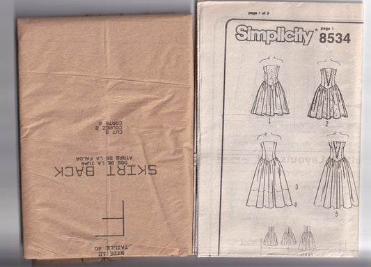 Simplicity 8534 GUNNE SAX Womens Evening Strapless Boned Bodice Dress 1980s Vintage Paper Sewing Pattern Size 12 Bust 34 Inches