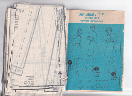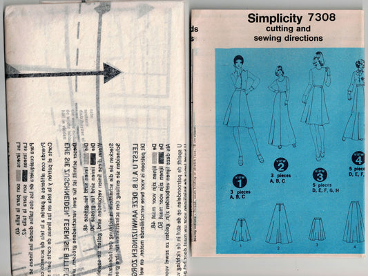 Patrón de costura vintage de los años 70 para falda cruzada o en forma de A para mujer Simplicity 7111, talla 8