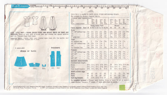 Style 4135 Womens EASY Square Neck Dress Tunic Top & Pants 1970s Vintage Paper Sewing Pattern Size 10 Bust 32.5 Inches