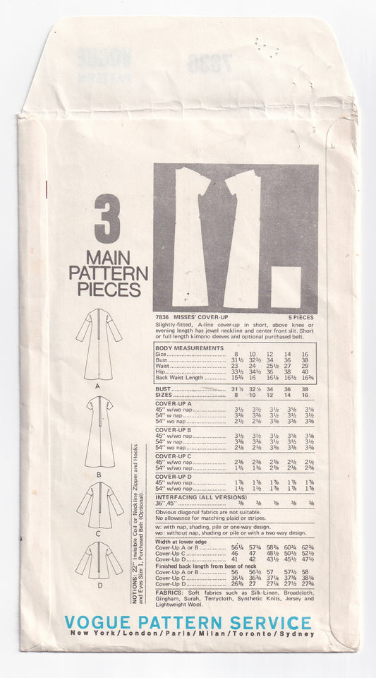 Very Easy Vogue 7836 Womens EASY Caftan Dress & Top 1970s Vintage Paper Sewing Pattern Size 12 Bust 34 Inches UNCUT Factory Folded