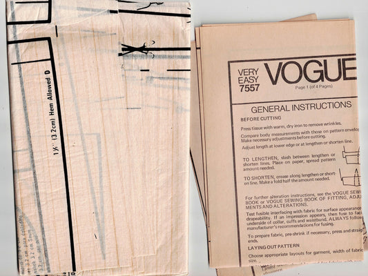 Very Easy Vogue 7557 Womens Pullover Dress & Top 1970s Vintage Sewing Pattern Size 14 Bust 36 Inches UNCUT Factory Folded