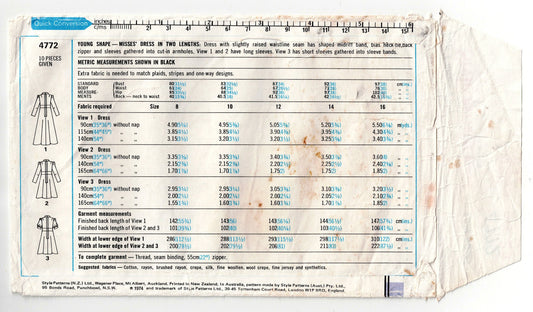 Style 4772 Womens High Waisted Dress with Shaped Midriff 1970s Vintage Sewing Pattern Size 12 Bust 34 inches