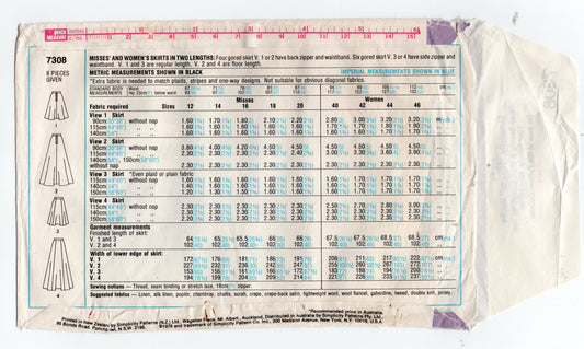 Patrón de costura vintage de los años 70 para faldas acampanadas maxi midi clásicas para mujer Simplicity 7308, talla 12 o 14