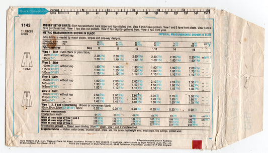 Patrón de costura vintage de los años 70, estilo 1143, faldas acampanadas para mujer en 4 estilos, talla 12, cintura 26,5 pulgadas