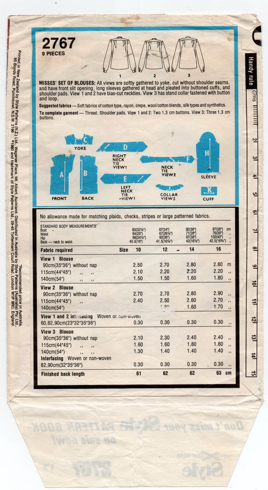 Patrón de costura vintage de los años 70 para blusas románticas con hombros fruncidos para mujer, estilo 2767, talla 10 o 12
