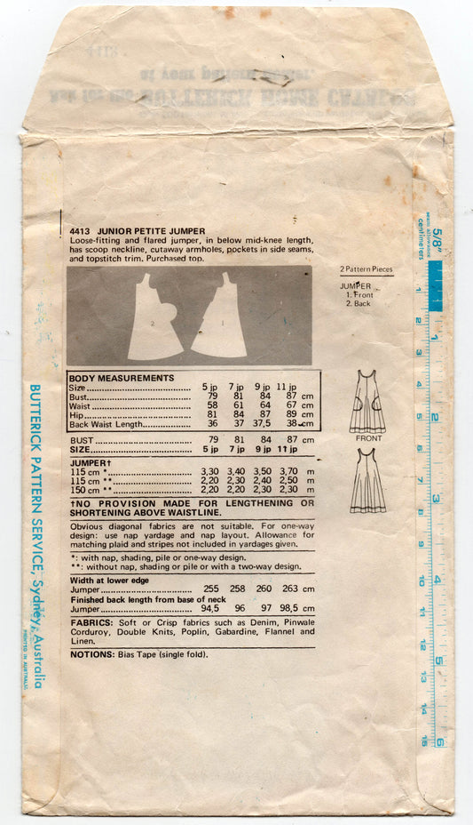 Butterick 4412 Vestido tipo carpa o delantal sin mangas para mujer, estilo sencillo, con bolsillos, patrón de costura vintage de los años 70, busto de 32 pulgadas