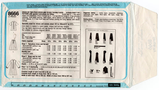 Patrón de costura vintage de los años 70 para vestido y falda de media talla para mujer Simplicity 8666, talla 14 1/2, busto de 37 pulgadas