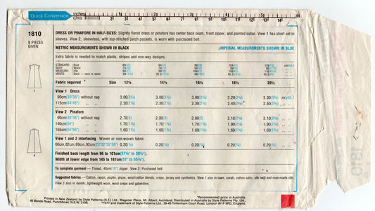 Patrón de costura vintage de los años 70 para vestido o delantal con cremallera delantera de talla media para mujer, estilo 1810, busto de 35 pulgadas