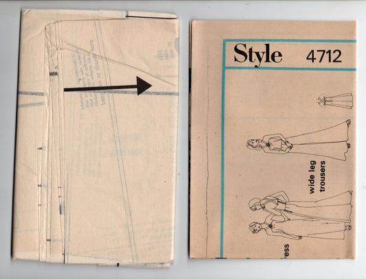 Patrón de costura vintage de los años 70, estilo 4712, para mujer, vestido o top largo con cuello halter y pantalones palazzo de pierna ancha, talla 10, sin cortar, doblado de fábrica