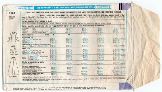 Patrón de costura vintage de los años 70 Simplicity 6140 para mujer, con parte superior tipo kimono, falda y pantalones anchos acampanados, JIFFY, talla 14, busto de 36 pulgadas