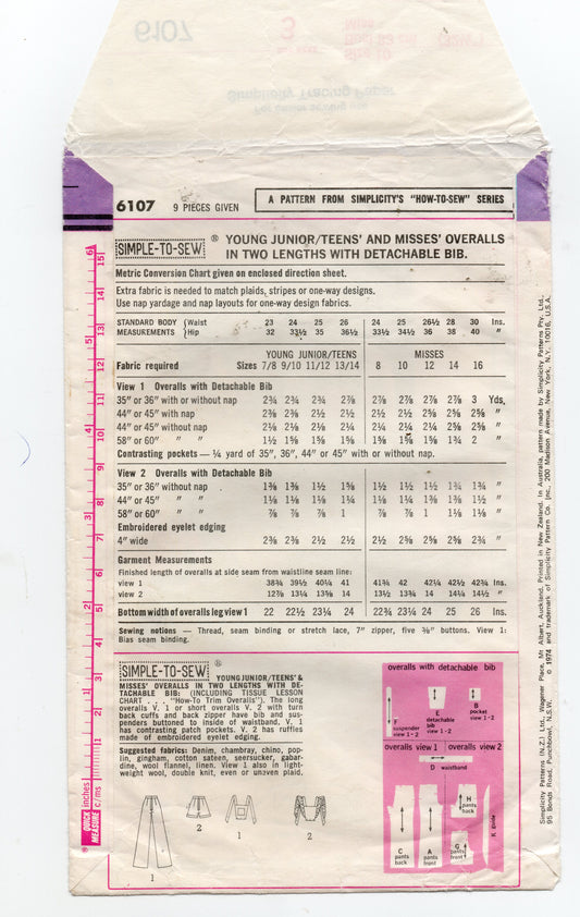 Patrón de costura vintage de los años 70 para pantalones cortos, petos y calzoncillos de mujer Simplicity 6107, talla 10, busto 32,5 pulgadas