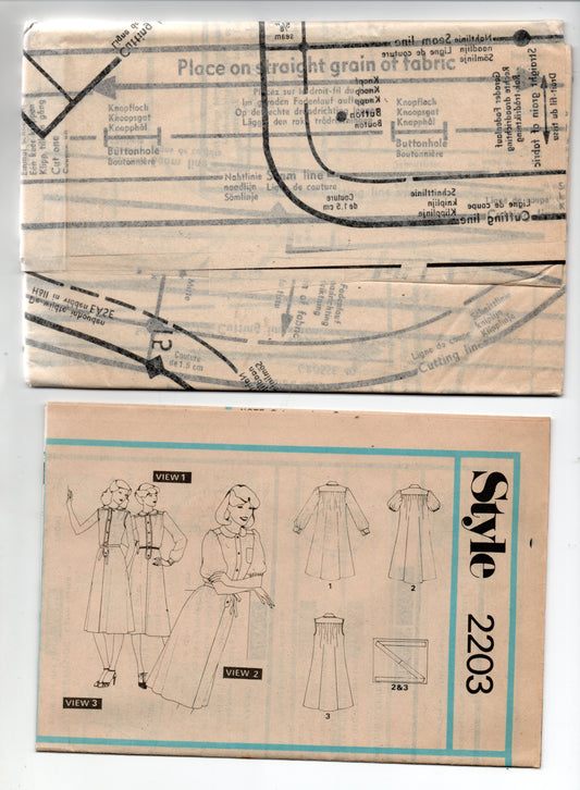 Patrón de costura vintage de los años 70 para vestido de mujer con hombros fruncidos y mangas abullonadas, estilo 2203, talla 12 o 14