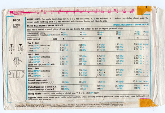 Patrón de costura vintage de los años 70 para faldas cruzadas o con paneles frontales abotonados Simplicity 6700 para mujer, talla 10 o 14