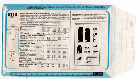 Patrón de costura vintage de los años 70 para vestido con cuello desmontable y parte delantera fruncida Simplicity 9118, talla 14, busto de 36 pulgadas, sin cortar, doblado de fábrica