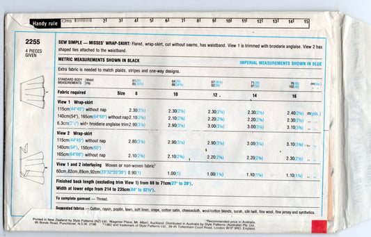 Patrón de costura de falda cruzada clásica estilo A para mujer, estilo 2255, años 70, talla 14 o 16