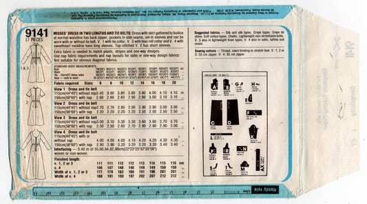 Vestido Simplicity 9141 para mujer en 2 largos con bolsillos, cuello alto o corbata, patrón de costura vintage de los años 70, talla 16, busto 38 pulgadas, SIN CORTAR, doblado de fábrica