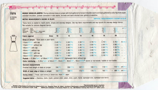 Patrón de costura vintage de los años 70 Simplicity 7375 para vestido o jersey con mangas cortas y cierre de cremallera en la parte delantera para mujer, con cinturón incorporado, talla 10, busto 32,5 pulgadas