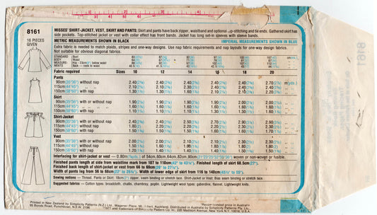 Patrón de costura vintage de los años 70 para mujer Simplicity 8161, de DISEÑADOR, para camisa, chaqueta, chaleco, falda y pantalones de talla grande, cuello ancho, talla 18 y 20, sin cortar, doblado de fábrica