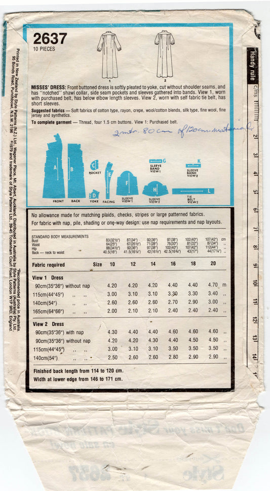 Patrón de costura vintage de los años 70 para vestido de mujer con hombros al descubierto y mangas abullonadas, estilo 2637, talla 12, busto 34 pulgadas