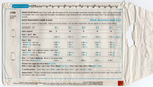 Patrón de costura vintage de los años 70 para faldas plisadas delgadas para mujer, estilo 1790, talla 12, cintura 26,5 pulgadas