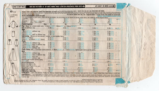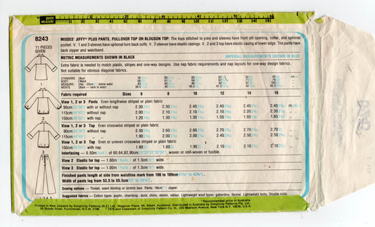 Patrón de costura vintage de los años 70 para jersey y pantalones JIFFY para mujer Simplicity 8243, talla 12, busto de 34 pulgadas