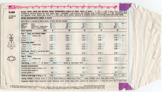 Patrón de costura vintage de los años 70 con escote fruncido y chaqueta para mujer Simplicity 6388, talla 12 o 14