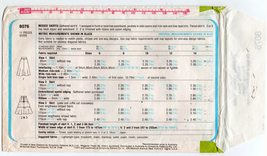 Patrón de costura vintage de los años 70 para falda cruzada o con frunces Simplicity 8076 para mujer, talla 10, 12 o 14