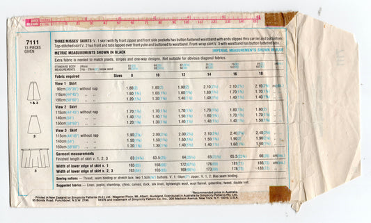 Patrón de costura vintage de los años 70 para falda cruzada o en forma de A para mujer Simplicity 7111, talla 8