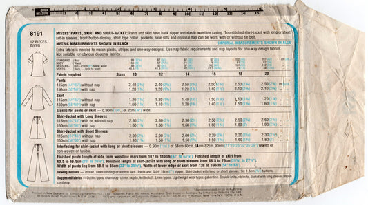 Patrón de costura vintage de los años 70 para camisa, chaqueta, falda y pantalones safari JIFFY para mujer de Simplicity 8191, talla 14, busto de 36 pulgadas