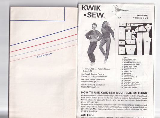 Kwik Sew 1487 Womens Stretch Knit Colour Block Tracksuits 1980s Vintage Paper Sewing Pattern Size XS - L UNCUT Factory Folded